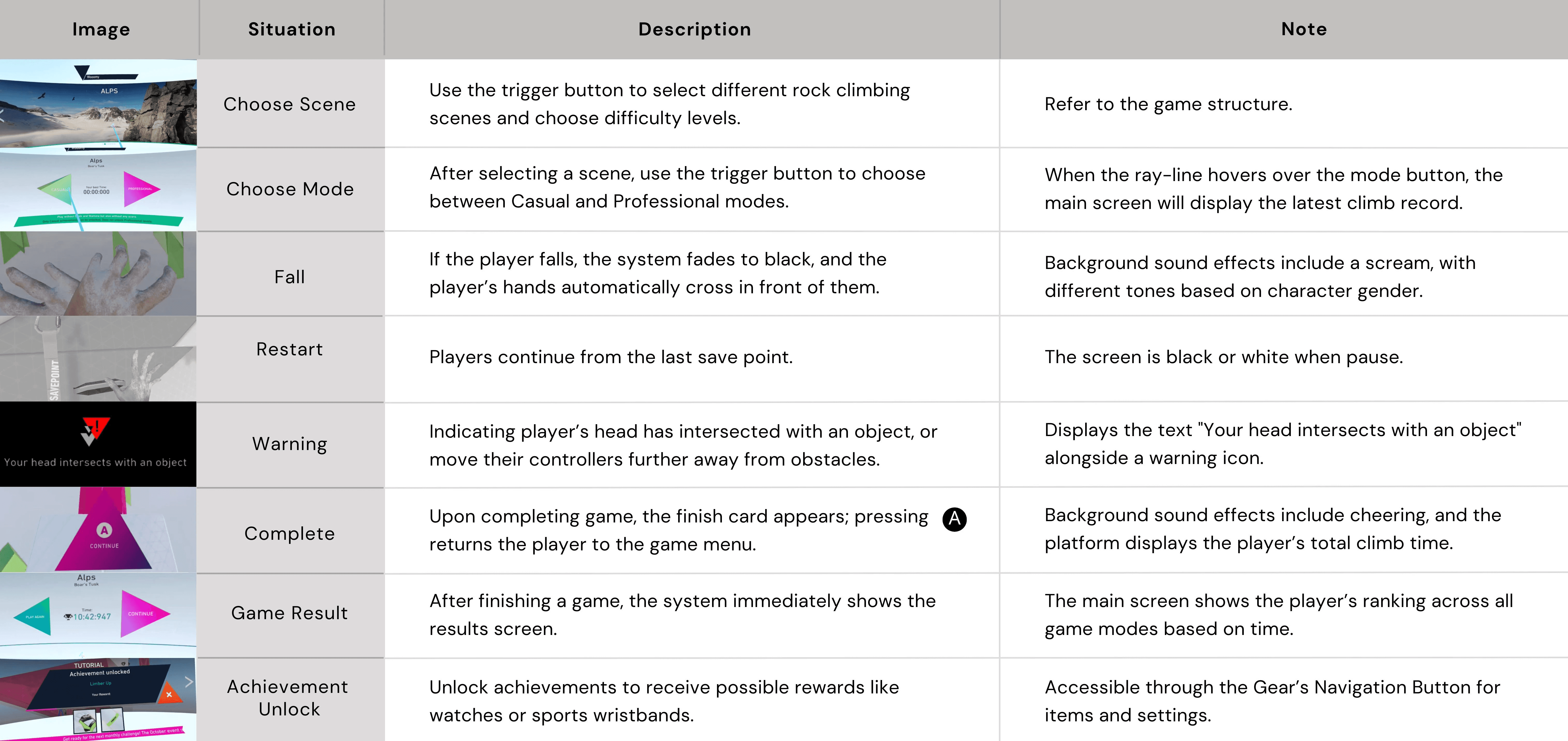 Game Environment, Controls, and Game Status in The Climb 2.